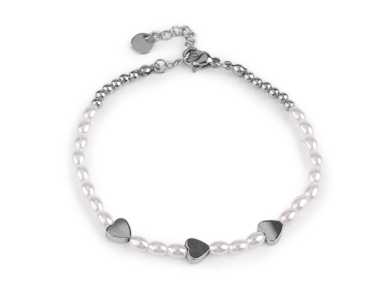 Náramek z nerezové oceli perlový - 1 ks - 3 bílá srdce