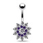 BP01099-CC Stříbrný piercing do pupíku - kytička - květiny - čirá/čirá
