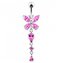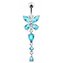 BP01142-Q Stříbrný piercing do pupíku - motýlek - tyrkysová