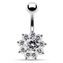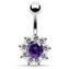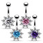 BP01169-P Stříbrný piercing do pupíku - kytička - květiny - růžová