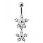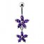 BP01117-P Stříbrný piercing do pupíku - kytičky - květiny - růžová