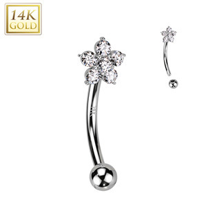 ZL01261-WG Zlatý piercing do obočí, čirý zirkon, Au 585/1000