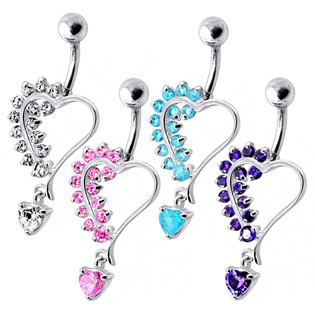 BP01312-C Stříbrný piercing do pupíku - srdíčko - srdce - čirá