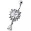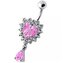 BP01126-CP Stříbrný piercing do pupíku - srdce - čirá/růžová