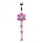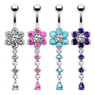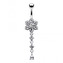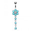 BP01290-Q Stříbrný piercing do pupíku - kytička - květiny - tyrkysová