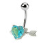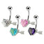 BP01020-Q Stříbrný piercing do pupíku - srdíčko probodnuté - srdce - tyrkysová