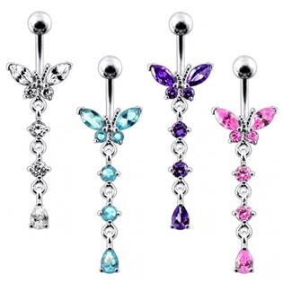 BP01302-C Stříbrný piercing do pupíku - motýlek - čirá