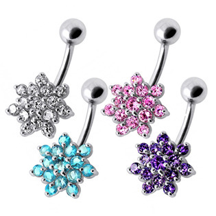 BP01032-A Stříbrný piercing do pupíku - kytička - květiny - tmavě fialová