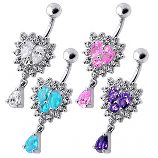 BP01126-CC Stříbrný piercing do pupíku - srdce - čirá/čirá