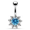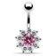 BP01169-A Stříbrný piercing do pupíku - kytička - květiny - tmavě fialová