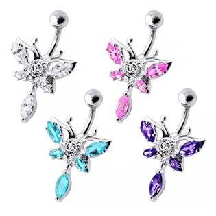 BP01242-C Stříbrný piercing do pupíku - motýl - čirá