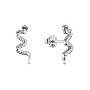 Stříbrné náušnice s motivem hada a zelenými zirkony