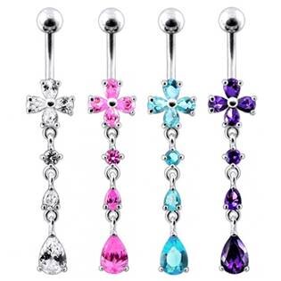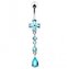 BP01211-Q Stříbrný piercing do pupíku - kytička - květiny - tyrkysová