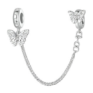 S0028 Stříbrný bezpečnostní řetízek na náramek - motýli