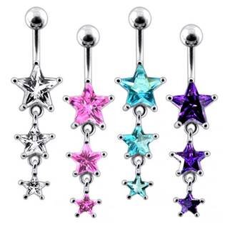 BP01265-C Stříbrný piercing do pupíku - hvězdy - čirá