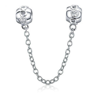 S0010 Stříbrný bezpečnostní řetízek na náramek - srdce