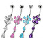 BP01011-Q Stříbrný piercing do pupíku - kytička - květiny - tyrkysová
