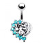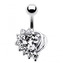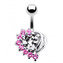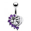 BP01155-CA Stříbrný piercing do pupíku - srdce - čirá/tmavě fialová