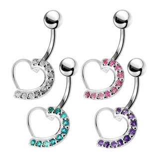 BP01031-C Stříbrný piercing do pupíku - srdce - čirá