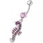 BP01096-A Stříbrný piercing do pupíku - mořský koník - fialová