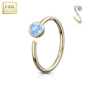 ZL01179BL-YG Zlatý piercing - kruh, modrý opál, Au 585/1000
