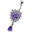 BP01126-CA Stříbrný piercing do pupíku - srdce - čirá/tmavě fialová