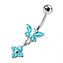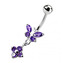 BP01287-A Stříbrný piercing do pupíku - motýlek s kytičkou - květiny - fialová