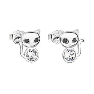 EG2509-CR Stříbrné náušnice pecka s krystaly Swarovski bílá kočka - zvířátka