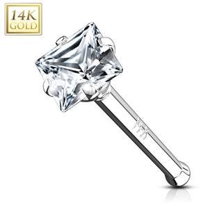 ZL01024-WG Zlatý piercing do nosu - čtvercový zirkon, Au 585/1000