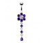 BP01290-P Stříbrný piercing do pupíku - kytička - květiny - růžová