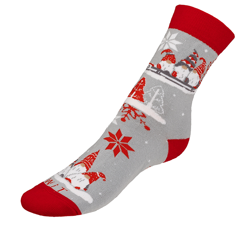 Ponožky DĚTSKÉ Trpaslíci - Šedá,Červená - 30-34