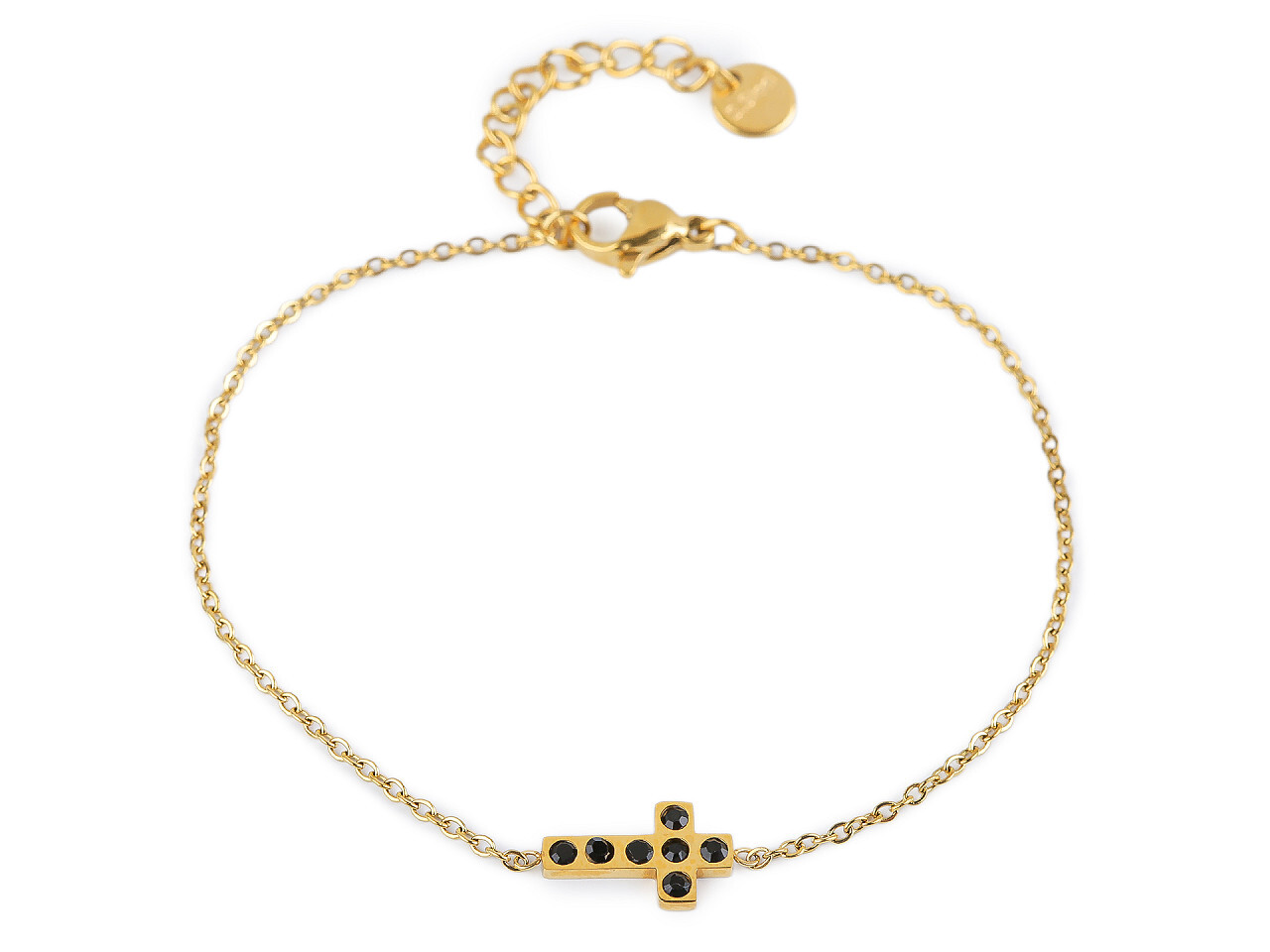 Náramek z nerezové oceli křížek s broušenými kamínky - 1 ks - 2 zlatá