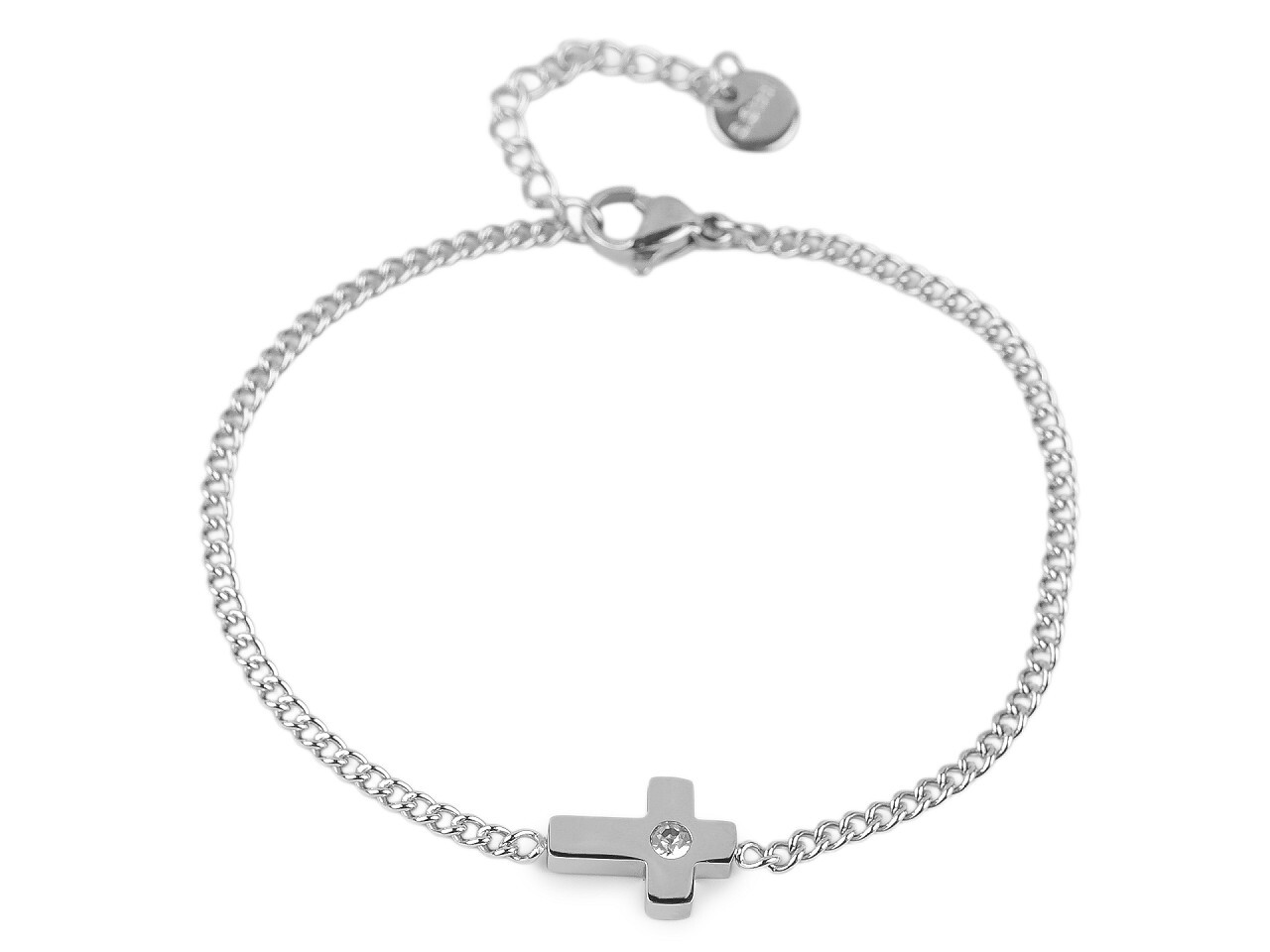 Náramek z nerezové oceli má poutavý detail v podobě křížku s broušeným kamínkem. Jednoduchý design z něj činí dokonalý módní doplněk pro každodenní nošení.Díky zapínání na karabinku a adjustačnímu řetízku je náramek snadno nastavitelný a dokonale se přizpůsobí vašemu zápěstí.Rozměry křížku jsou 9... weiter lesen