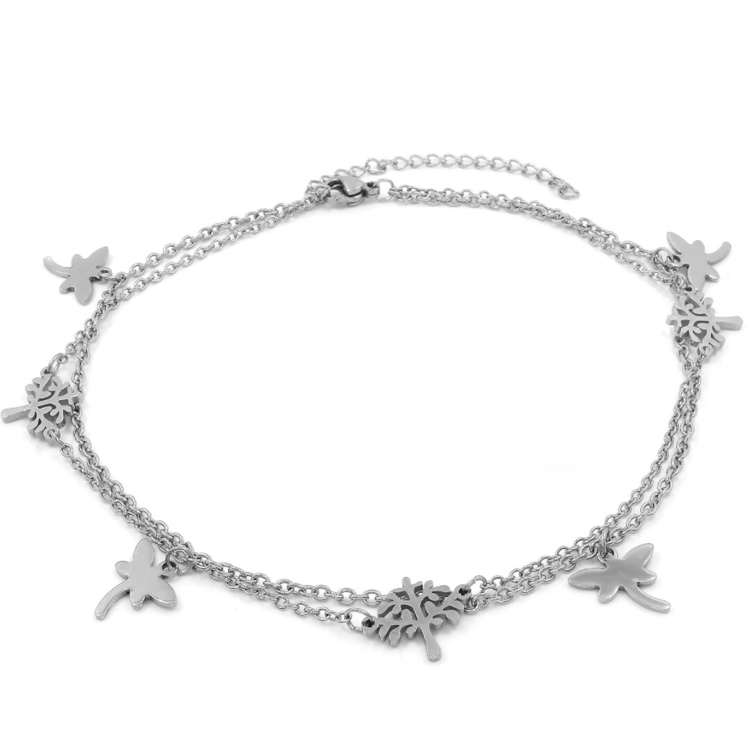 Dvojitý řetízek na nohu STROM ŽIVOTA - chirurgická ocel