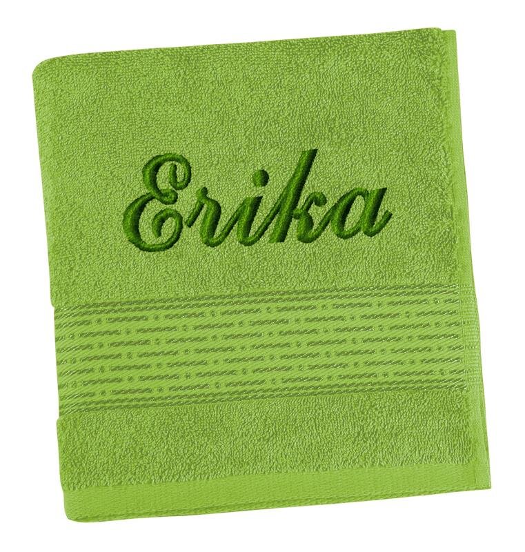 Froté ručník proužek s výšivkou jména - Olivová - 50x100 cm