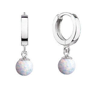 EG2944-OP17 Stříbrné náušnice kruhy s bílým syntetickým opálem