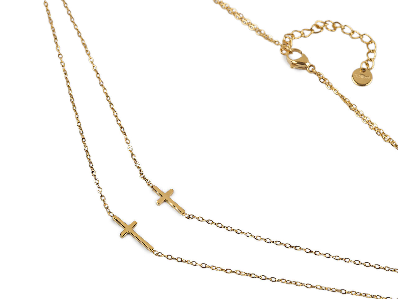 Náhrdelník z nerezové oceli dvojitý, křížek - 1 ks - 2 zlatá