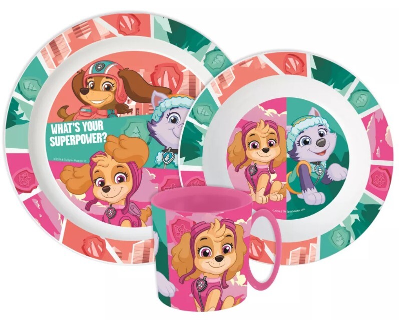 Plastový jídelní set TLAPKOVÁ PATROLA what´s your superpower růžový