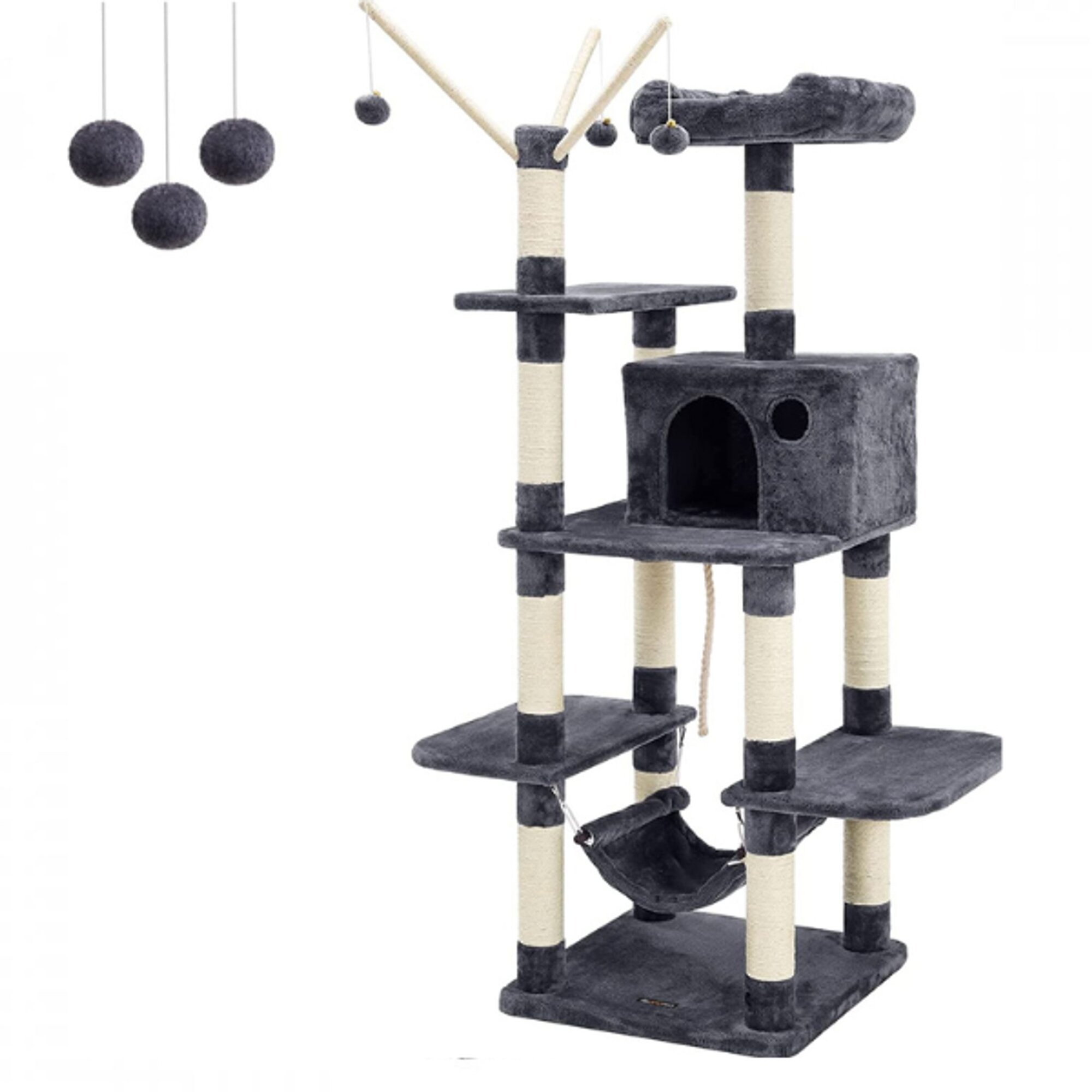 Kočičí strom je ideálním bytovým doplňkem pro vaši kočku nebo kočky, který může být také jedinečným designovým doplňkem obývacího pokoje. Na vyhlídkových plošinách se silným polstrováním budou mít vaše kočky dokonalý přehled o veškerém dění. Odpočinkové plošiny, pelíšky a boudičky jsou umístěny v...