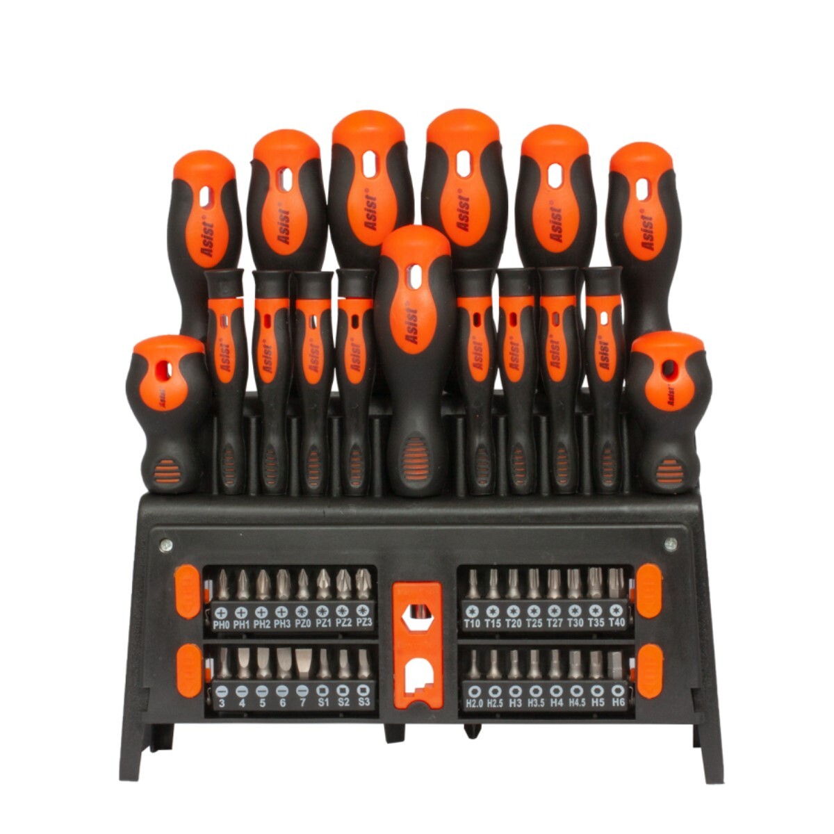 Sada šroubováků a bitů – 50 ks, CR-V ASIST AR33-2001 je univerzální pomocník pro domácnost, dílnu i servis. Kombinuje odolnou chrom-vanadiovou ocel, široký výběr profilů a praktický nástěnný držák, díky kterému budete mít vše vždy po ruce. Přesně padnoucí hroty minimalizují stržení šroubů a...