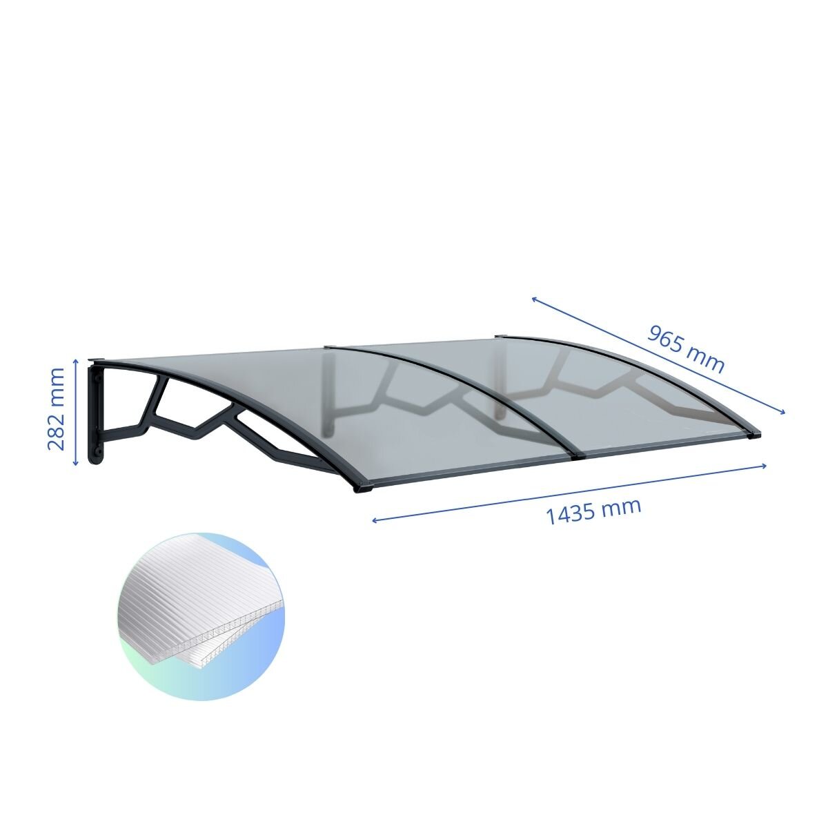Stříška nad vchodové dveře, okna či jako přístřešek na terasu, balkón a nebo nad cestičku u budovy, instalační rozměry 96,5x143,5cm, v transparentní barvě z komůrkového polykarbonátu.Vchodová stříška 100x145cm, transparentní polykarbonátStříška s komůrkovým polykarbonátem kouřové barvy s anti-UV...