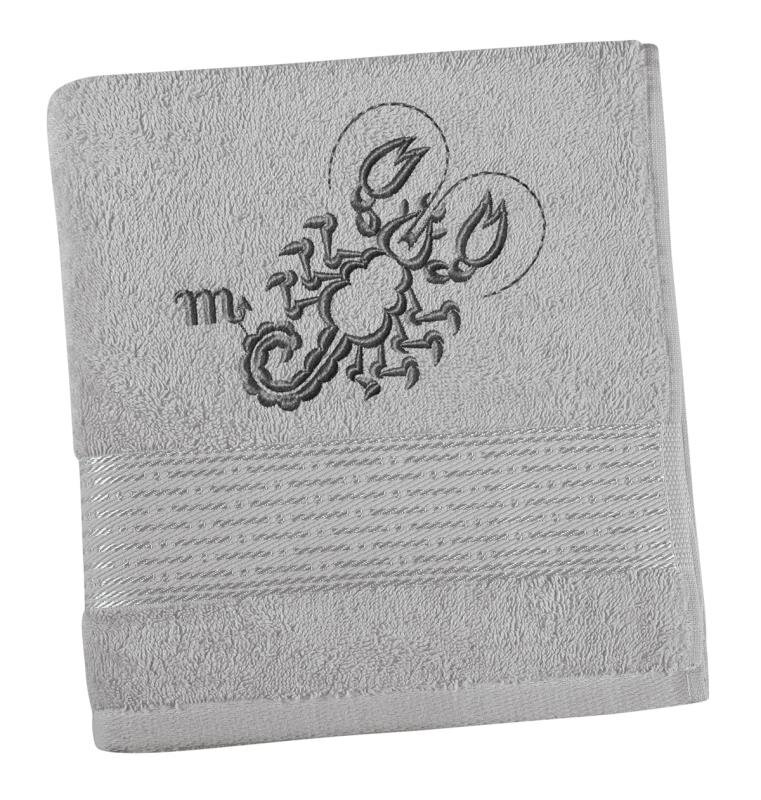 Froté ručník proužek s výšivkou znamení zvěrokruhu - Šedá - 50x100 cm