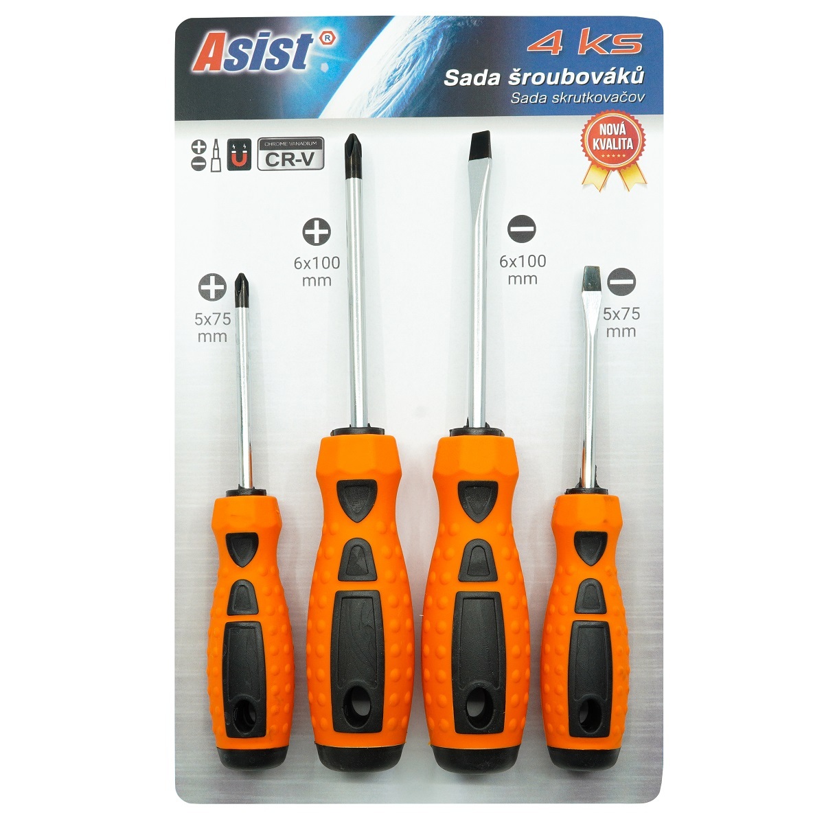 Sada šroubováků 4 ks, ChromVanadium – jistota v každém utaženíTato kompaktní sada kombinuje odolnost slitiny chrom-vanadium s pohodlím protiskluzových rukojetí a přesností magnetických hrotů. Dva křížové a dva ploché šroubováky v délkách 75 a 100 mm pokryjí většinu domácích i dílenských úkonů –...
