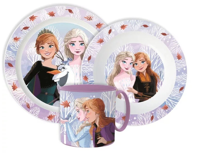 Plastový jídelní set FROZEN autumn leaves s hrnkem fialový