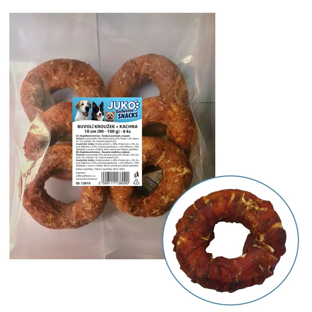 Kroužek buvolí obalený kachním masem JUKO Snacks 10 cm (6 ks)