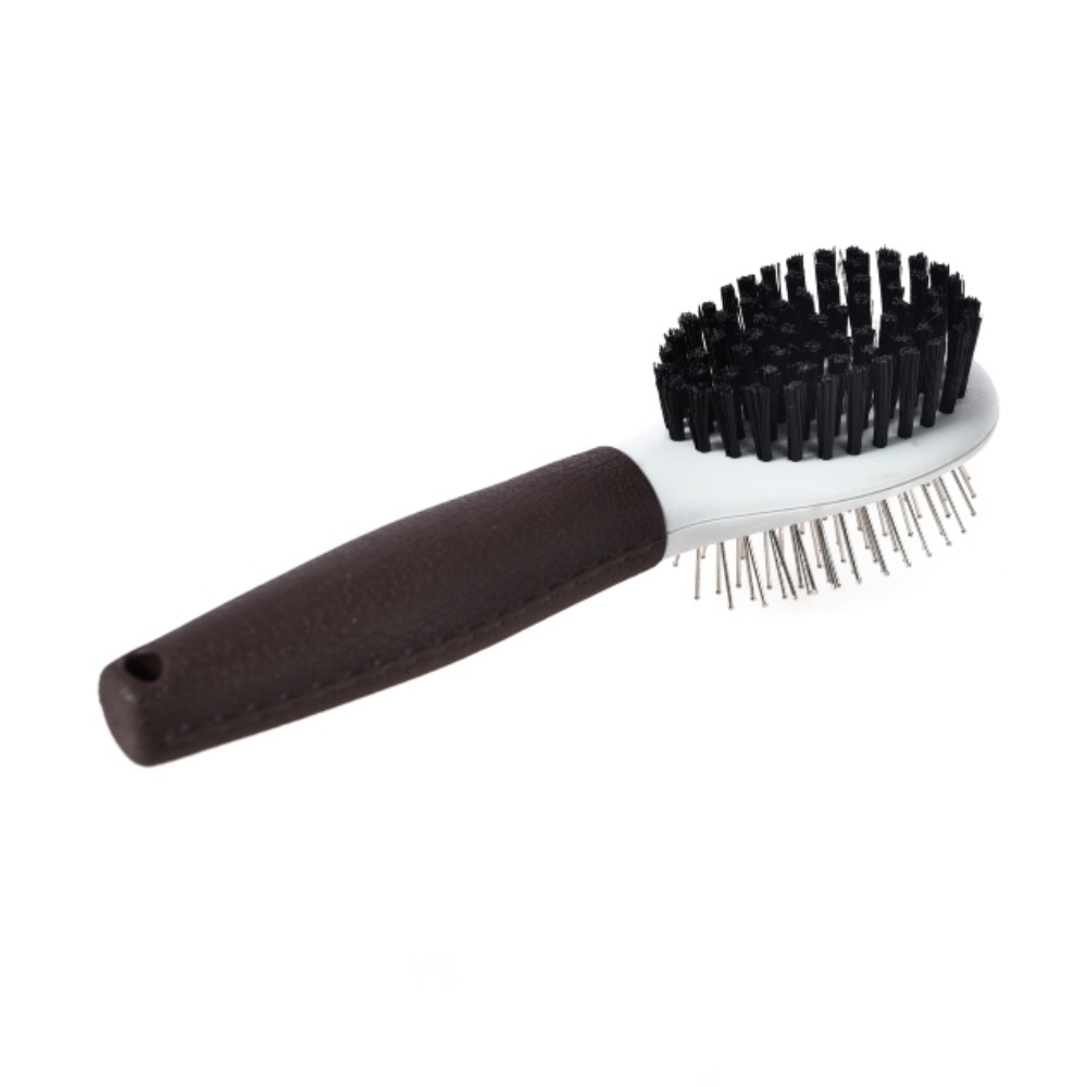 Oboustranný kulatý kartáč je vhodný pro všechny typy srsti, je ideální pro každodenní čištění pro malá nebo středně velká zvířata.Protiskluzová rukojeť z termoplastické gumy v designu imitace kůže. Na jedné straně jsou zuby z nerezové oceli pomáhají vyesávat a  eliminují přebytečnou srst, aniž by... weiter lesen