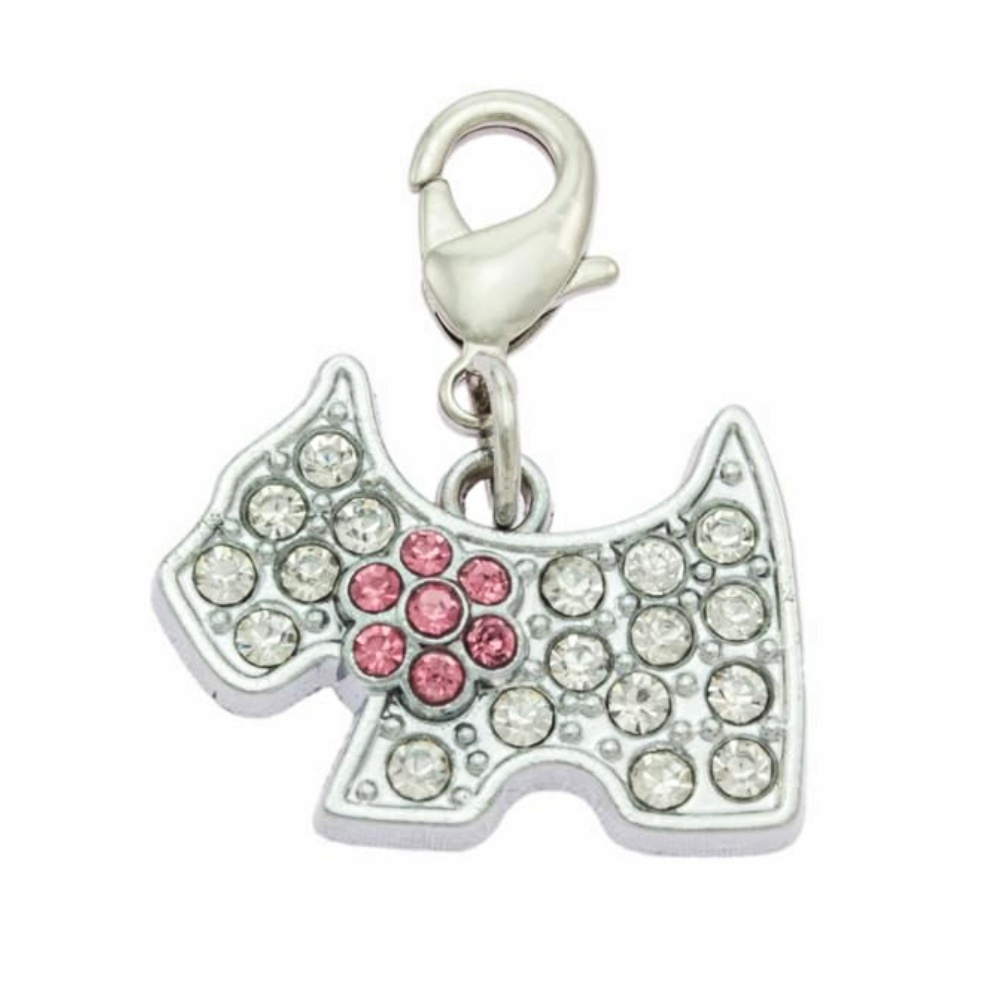 Přívěšek na obojek ve tvaru pejska vykládaný kamínky.Pomocí karabinky můžete připnout kdekoliv.Materiál: zinkoslitina, povrchová úprava chrom weiter lesen