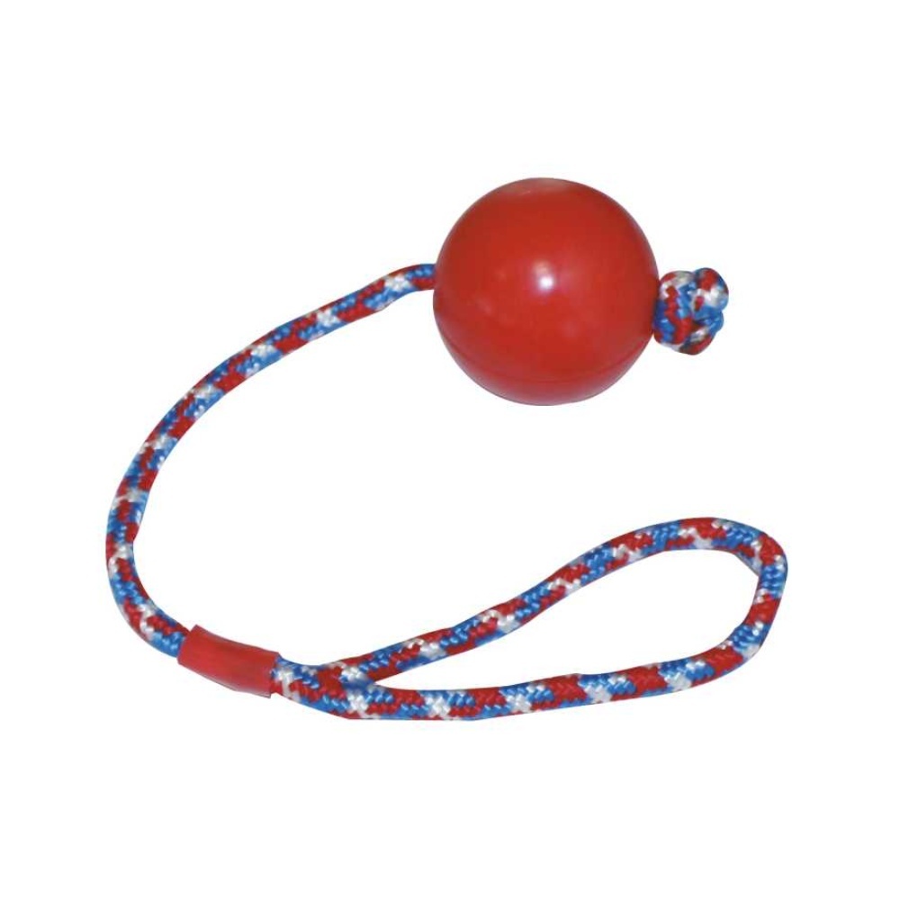 Odolný míček pro aport, výcvik i přetahování.Vyroben z pevné tvrdé gumy a je vybaven praktickou opletenou šňůrou s dostatečně prostrorným poutkem Vám umožní hračku pohodlně držet v průběhu hry. Skvělý pomocník při výcviku, aportování nebo přetahování, zároveň skvěle zabaví psa ve volném čase.-...