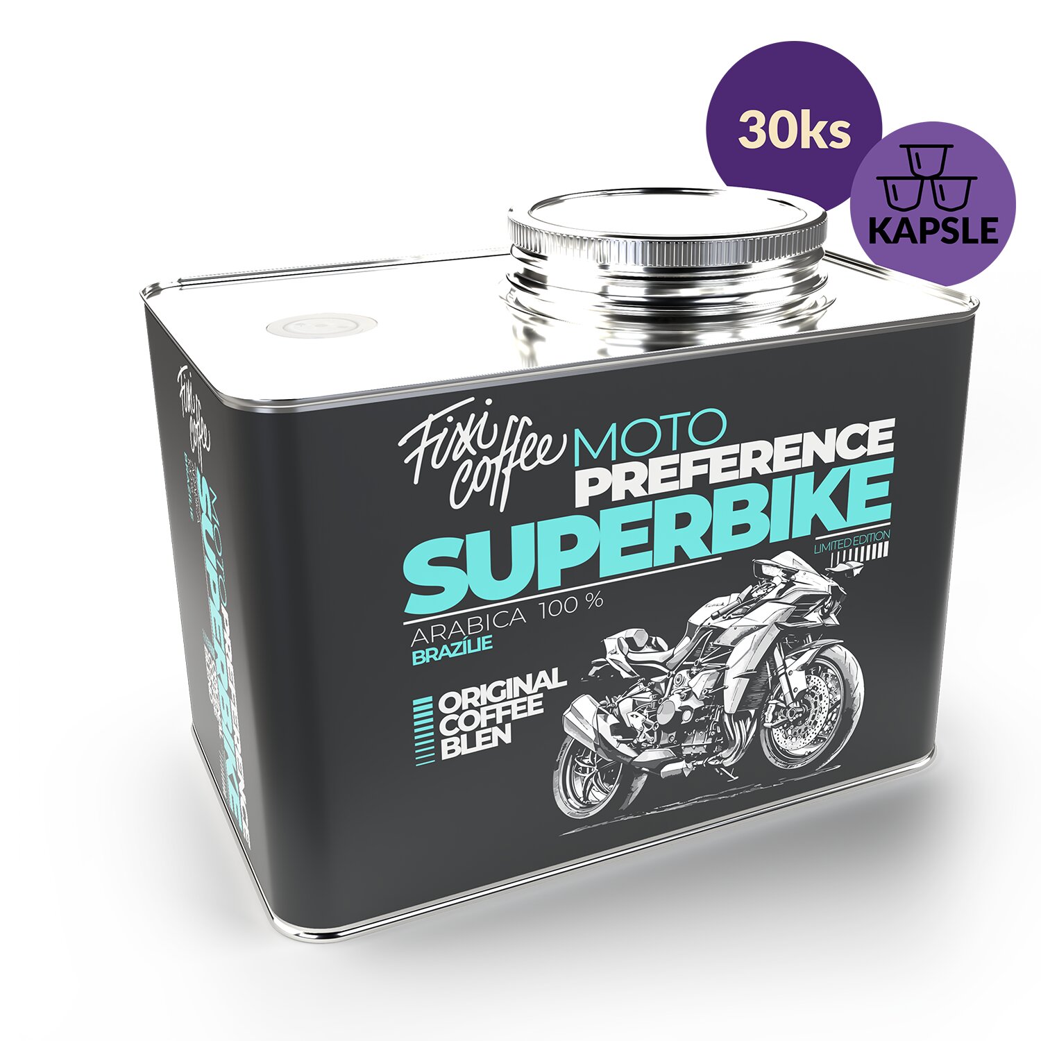 Motokafe – Superbike – dárková káva kapsle / stylový plechový kanystr / 30 ks