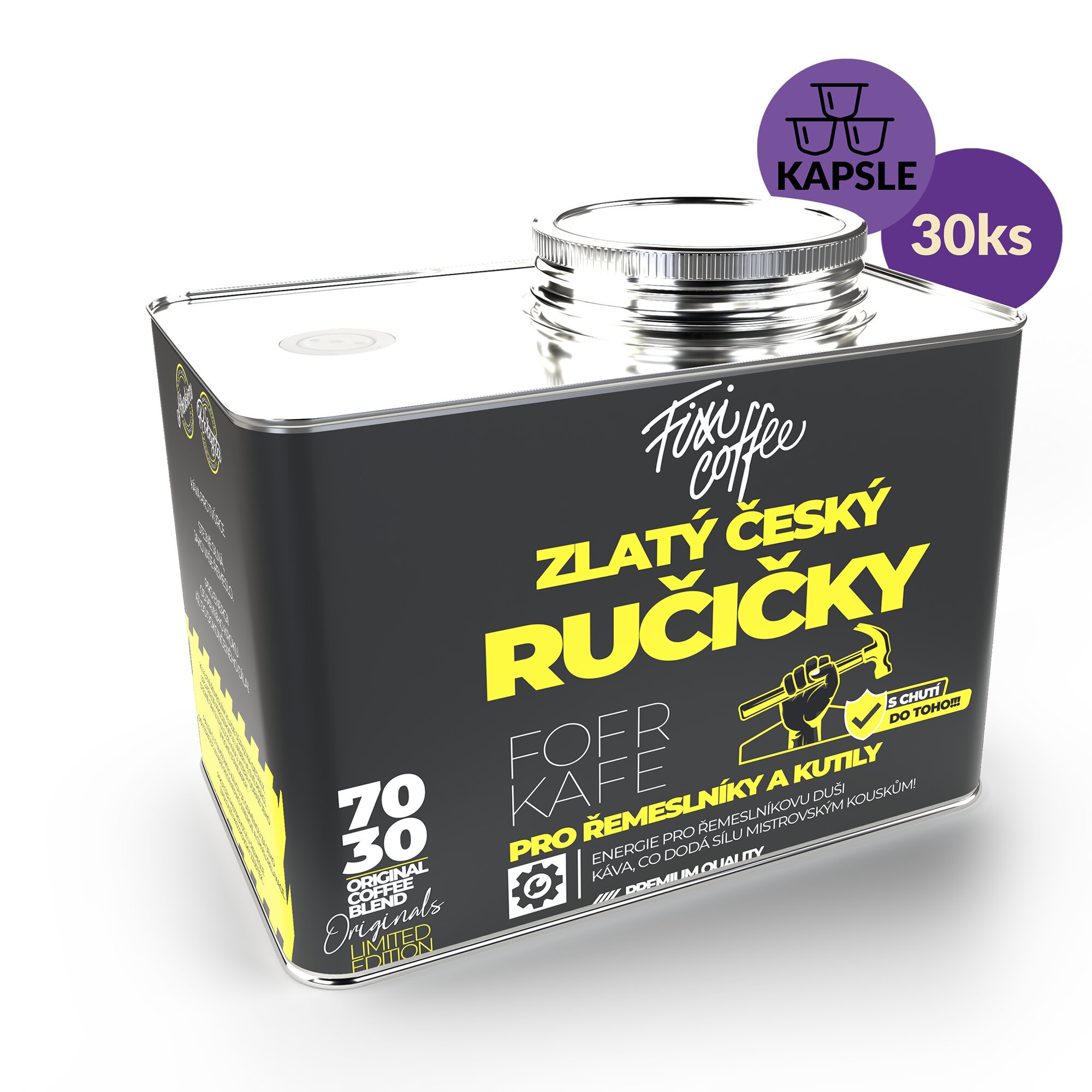 Fofrkafe – Zlatý český ručičky – dárková káva kapsle / stylový plechový kanystr / 30 ks